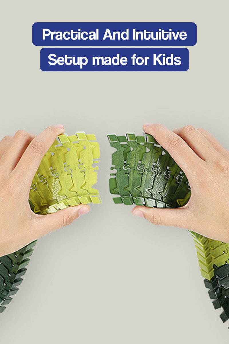 Expand your child's motor skills, hand-eye coordination, and social skills with this Dinosaur Adventure Roller Coaster Set.